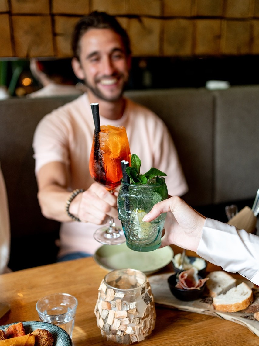 Ga je voor een gin tonic of een van onze andere huisgemaakte cocktails? Shaken or stirred: wij zetten jouw favoriete drankje op tafel. Of je nu zin hebt in een Aperol Spritz, Diverse Martini's of onze geliefde Unicorn Cocktail. Laat je verrassen in ons restaurant of op ons (verwarmde) terras.